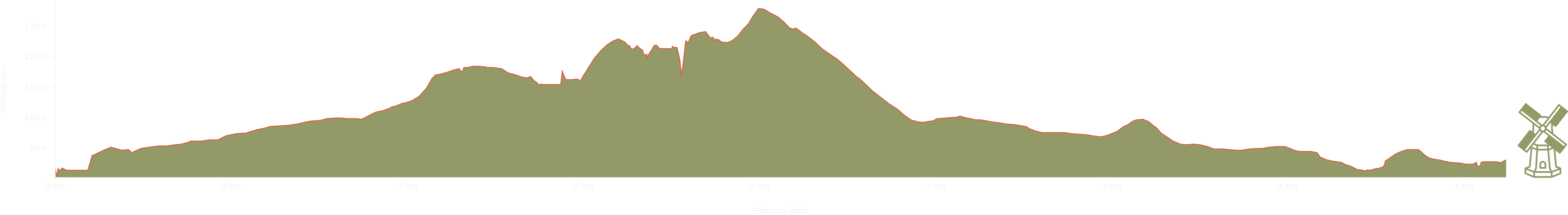 Elevation: Max 136m, Min 80m, Gain 56m