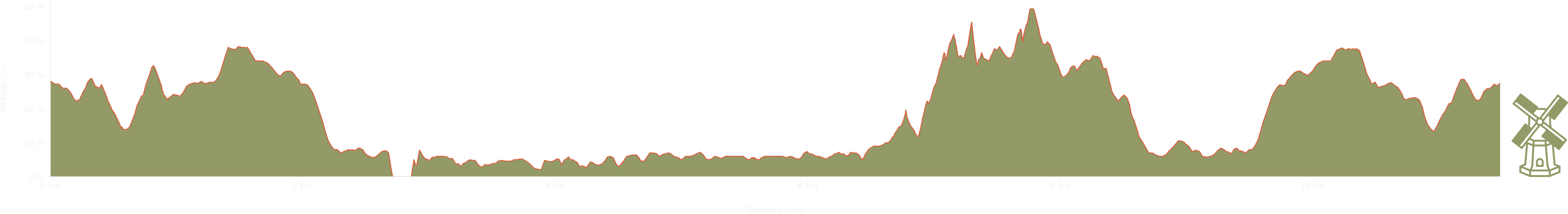 Elevation: Max 49m, Min 0m, Gain 49m